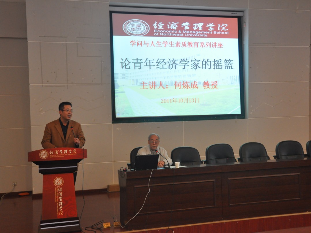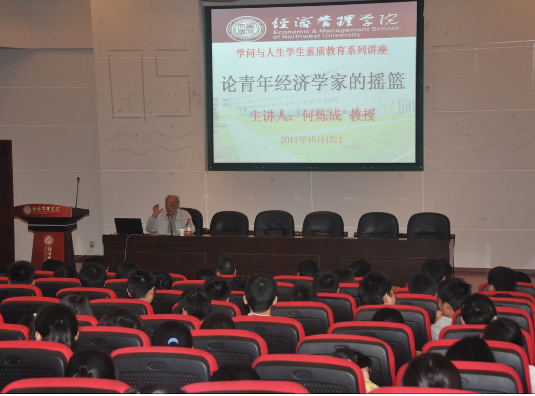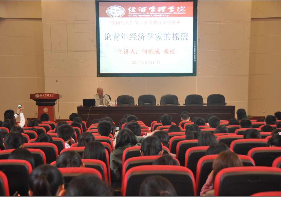 2011年10月13日下午,“学问与人生”大学生素质教育系列讲座(第一讲)在南校区金海恒业报告厅举行。著名经济学家、yl7703永利集团名誉院长、博士生导师何炼成教授为我院师生作了题为《论青年经济学家的摇篮》的素质教育讲座。300余名师生聆听了讲座,讲座由王宝书记主持。