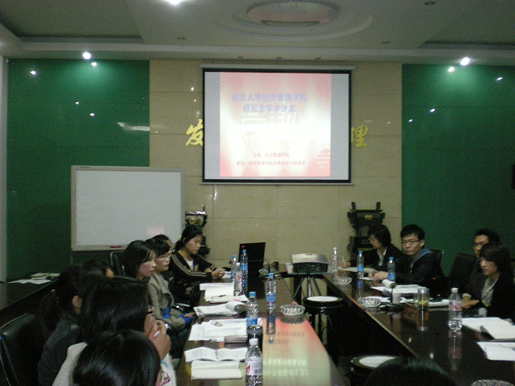 2009年10月30日晚,我院在学院一层会议室举办了“世界经济与贸易系研究生学术沙龙”。活动由贸易系主任吴航副教授作点评,贸易系研究生参加。
