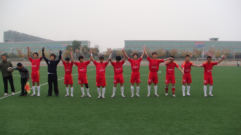 在10月9日举行的 “健康杯”足球赛总决赛中,我院男子足球队以4:2的大比分力克对手公共管理学院队取得总决赛冠军。本届球赛,在院团委老师的关心与支持下,在队员的积极拼抢努力拼搏下,在场下拉拉队同学的热烈有序的助威声中,我院足球队以7胜1平的辉煌战绩再次问鼎“健康杯”足球赛总冠军。这次活动,不仅丰富了我院同学的课余文化生活,而且充分展现了我院学生活泼主动,积极向上,努力进取,朝气蓬勃的精神风貌。