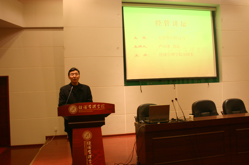 11月24日,卢山冰教授应邀为毕业生做了“大学生应聘技巧”专题报告会。报告会由院党总支副书记樊涛老师主持。200多名毕业生参加了报告会。