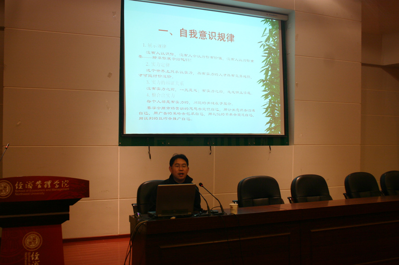 卢教授首先分析了当前的经济形势和就业形势,他指出当前全球性的“金融风暴”在一段时间内对我国快速稳定的经济发展影响较大,加之近年来毕业生的人数逐年增加,导致就业压力较大。如何在竞争激烈的就业形势下合理的突出个人优势,有效的整合自身资源,找到满意的工作,卢教授从求职者应思考的战略就业意识,应聘时需要注意的问题,及如何提升个人修养,做到知礼节、懂礼貌等方面对学生作了全面的指导。卢老师教导同学们要学会用市场营销的思想去定位自己,用公关意识去沟通自己,用广告的策略去包装自己,用礼仪的素养去塑造自己,用谈判的技巧去推广自己。
