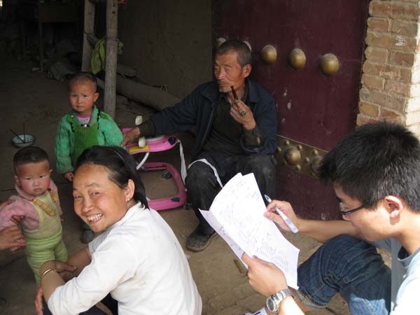 在为期两天的社会调查中,同学们针对当地农民的基本生活状况、外出务工情况、金融发展状况以及产业结构状况等问题进行了深入的调研与分析。调查中,同学们走家串户,向广大农民朋友仔细询问,深入交流,全面了解当地的基本状况,收集到了第一手资料。