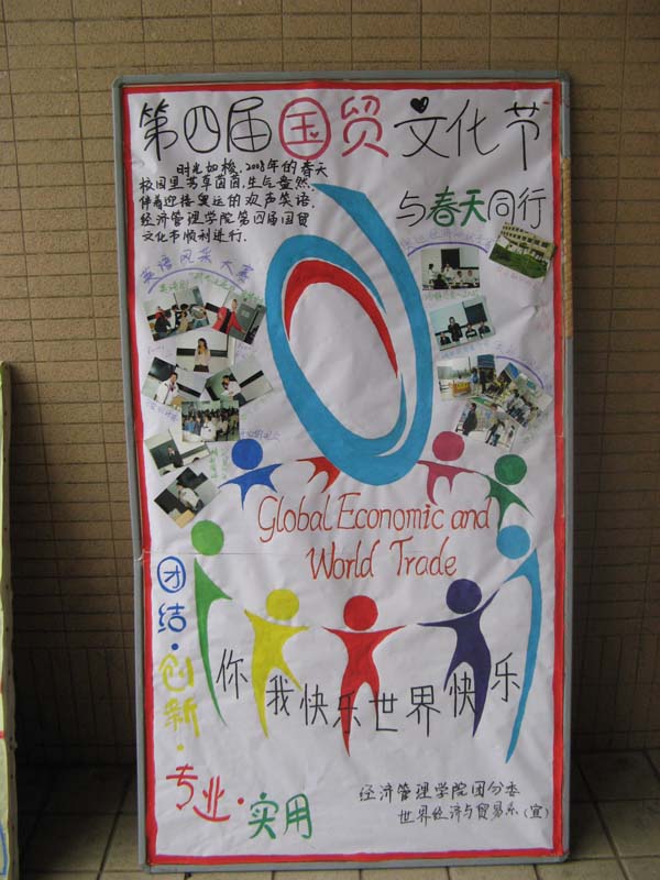 国贸文化节是面向全校师生,以国际贸易专业知识为背景的系列主题活动,它是由yl7703永利集团团分委和世界经济与贸易系共同主办的,也是我校唯一的由专业院系举办的节日活动。国贸文化节主题鲜明,内容丰富,形式多样,影响广泛。自2005年由世界经济与贸易系创办至今,国贸文化节已成为我院乃至我校学生活动中一道独特亮丽的风景线,为更多的人所熟知和铭记。