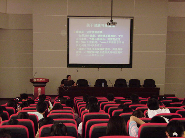 随后,郑安云老师做了题为“大学生常见心理问题及辅导”的报告,郑老师在健康、亚健康标准、以及21世纪健康人的标准,以及大学生常见心理问题的疏导等方面向同学们作了详细的解释。并介绍了日常心理问题处理的小技巧,并且最后还在现场对同学们做了性格小测试,现场气氛十分活跃。