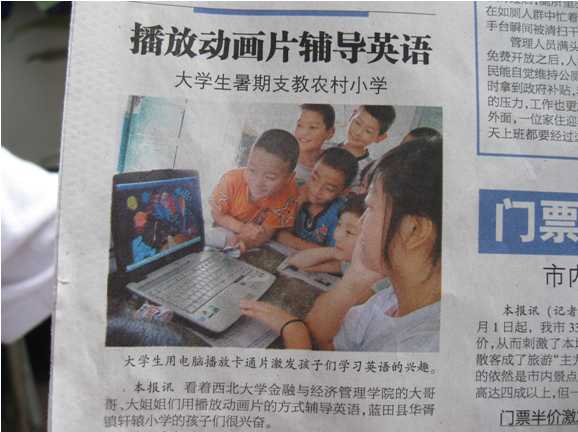 在团委老师的指导帮助及全体队员的共同努力下,为期一周的实践活动得以顺利进行,并取得了令人欣慰的成效。活动期间,陕西电视台、《西安晚报》等各大媒体对我们的活动进行了跟踪报道和宣传。整个活动在当地树立了西大学子公诚勤朴的形象,彰显了百年名校学子的风采。真正做到了“送真情到农村,带经验回西大”的活动宗旨,是一次使我们受益匪浅的实践活动。