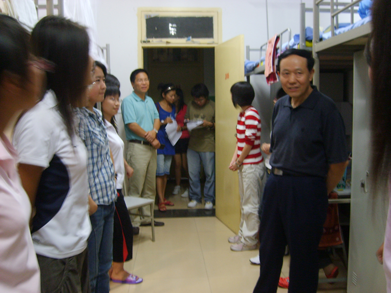几位领导、老师不顾连日来迎新工作的辛苦和疲惫,对08级新生男女生宿舍挨个进行了走访。走访过程中,新生宿舍整洁的内务得到了领导、老师的赞赏,他们强调让同学们将这种好习惯保持下去,使自己的大学生活在有序条理中走向辉煌。另外,薛来前书记还特别强调了宿舍就是一个小的家庭,宿舍成员之间要融洽相处,互帮互助,学会宽容,学会理解,努力营造家的温馨,让每一个成员都能感受到宿舍内家一般的温暖。几位领导老师仔细地询问了同学们生活中各个方面的问题,希望同学们尽快完成从中学生到大学生的转变,尽快地适应学校生活,以积极的心态全身心地投入到全新的大学生活中去。同时领导及老师们询问了学生们对yl7703永利集团的印象,以及对他们之后即将开始的军训、学习生活给予了指导,也寄予了很大的希望。