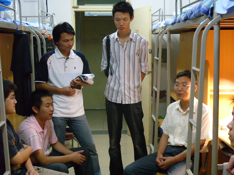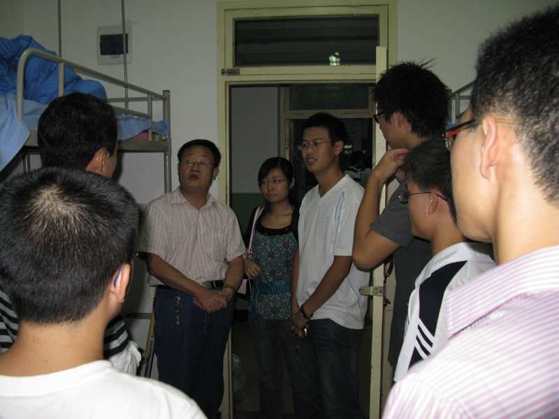 9月8日下午,随着08级新生报到工作的完成,我院新生迎新工作也已告一段落,为确保我院新生尽快融入大学校园、适应大学生活,我院党总支书记薛来前老师,党总支副书记樊涛老师、副院长任保平老师、严汉平老师,院长助理惠宁老师,带领学生工作干部一起走进了08级新生宿舍,了解新生的住宿情况,给予新生更多的关怀与温暖。