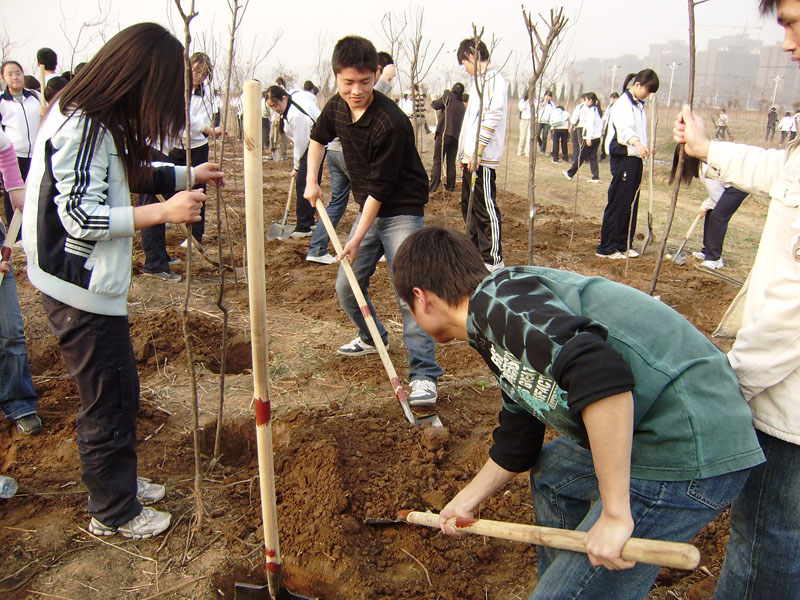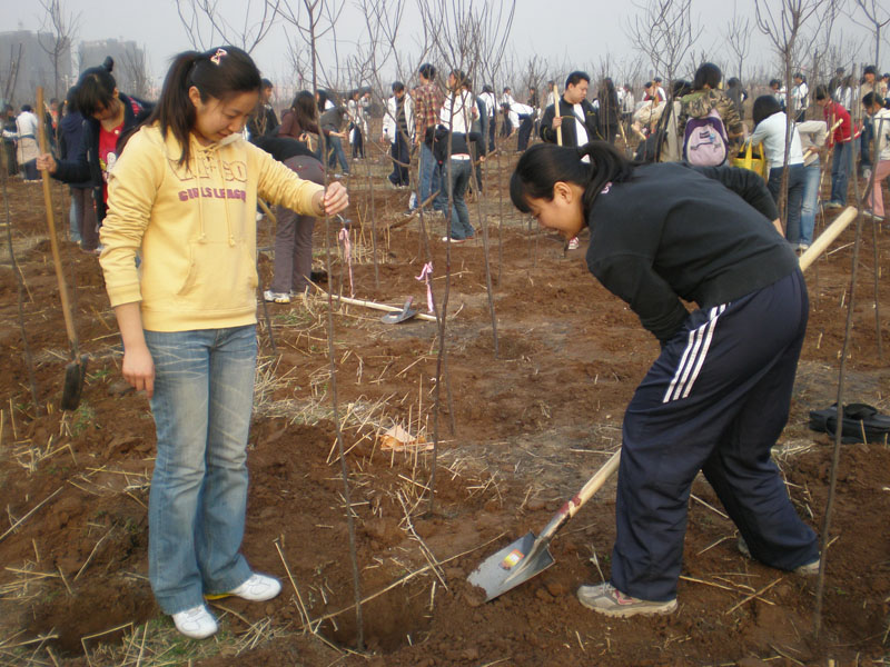 在植树节来临之际,我院积极响应学校号召,组织2005级、2006级和2007级共350多名学生开展了“建设绿色和谐校园”义务植树活动。