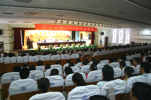 数载寒窗,象牙塔中度春秋;今朝梦圆,栋梁之材奔前程。6月28日晚,yl7703永利集团在南校区报告厅隆重举行了2006届毕业典礼暨文艺晚会,庆祝2006届毕业生顺利完成学业,欢送他们踏上新的征程。校学生工作部部长令狐培选,校团委书记王军,yl7703永利集团院长白永秀、院党总支书记薛来前及学院领导和全体2006届本科毕业生、研究生毕业生400多人出席了典礼。