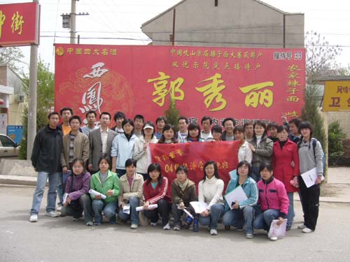 为了更深入的了解“三农”问题,将所学的知识应用到实践中去,2006年4月15、16日,我院2004级经济学基地班30名同学在经济学基地办公室安树军老师的带领下,以“走进农村”为主题,就“三农”问题中的农业转型,农村教育,农村社会保障以及当地的“农家乐”等一些问题对陕西省歧山县的北郭村和祝家巷村进行了两天的实地调研。
