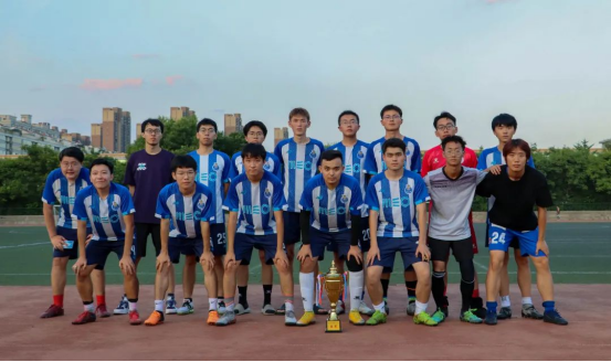 首局对战文学院,经管男足气势如虹,凭借3:0的优异成绩打下开门红,并在接下来的三轮比赛中以锐不可当之势连战连胜,顺利挺进半决赛。随后对战法哲,尽管比分紧咬、战况焦灼,但经管男足始终沉着应战,将合力发挥到极致,最终赢得比赛。决赛中面对信管强队的猛攻,男足队员们无畏无惧,虚心迎敌谨慎防守,是他们始终如一的认真与知难行难的决心铸就了亚军的荣耀。