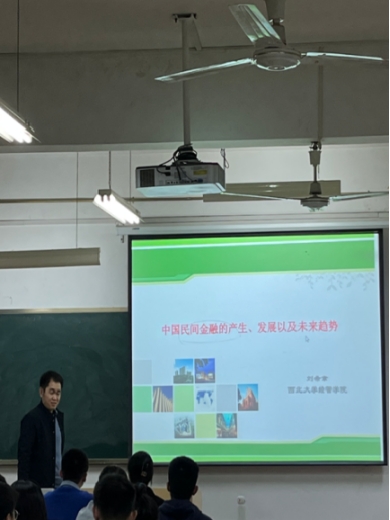 10月26日晚7点,研究生学术月系列学术讲座第二讲在长安校区2306教室如期举行,刘希章老师主讲“中国民间金融的产生、发展及未来趋势”。