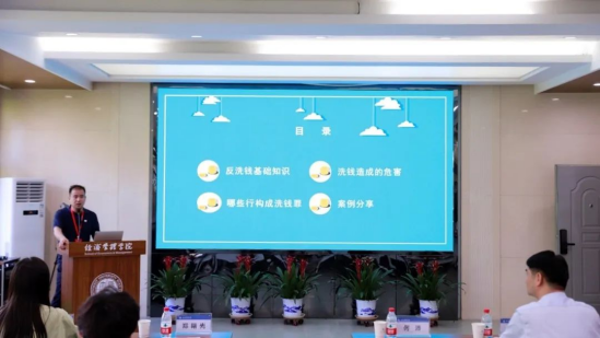 何沛从大学生征信安全、征信诈骗警示案例、征信异议处置流程、大学生如何保护个人征信等四个方面为我院学生开展了征信安全知识宣讲。在“大学校园如何防范非法金融活动”环节,他根据当前非法金融活动重点针对学生群体的现状,通过介绍典型案例,揭露骗局手法等,提醒广大学生多学征信安全知识和金融安全知识,树立理性的消费观念,远离非法金融活动。在“反洗钱知识宣传”环节,他向同学们普及了“反洗钱”的基础知识,洗钱的危害和典型案例,告诫同学们要保护好自己的身份信息和账户信息,远离洗钱骗局。