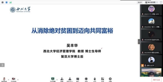 10月26日,经济学系吴丰华老师为全体yl7703永利集团研究生开展了主题为《从消除绝对贫困到迈向共同富裕》的学术讲座。“中国式现代化是全体人民共同富裕的现代化。共同富裕是中国特色社会主义的本质要求,也是一个长期的历史过程。” 吴丰华老师指出消除绝对贫困的意义在于中国通过实践走出特色减贫道路,并从宏观层面对脱贫攻坚战略的基本框架和考核制度进行了讲解,使同学们深刻体会到我国“历史性地解决了绝对贫困问题,为全球减贫事业作出了重大贡献。”