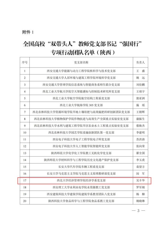 喜报!我院经济学系党支部入选全国高校“双带头人”教师党支部书记“强国行”专项行动团队