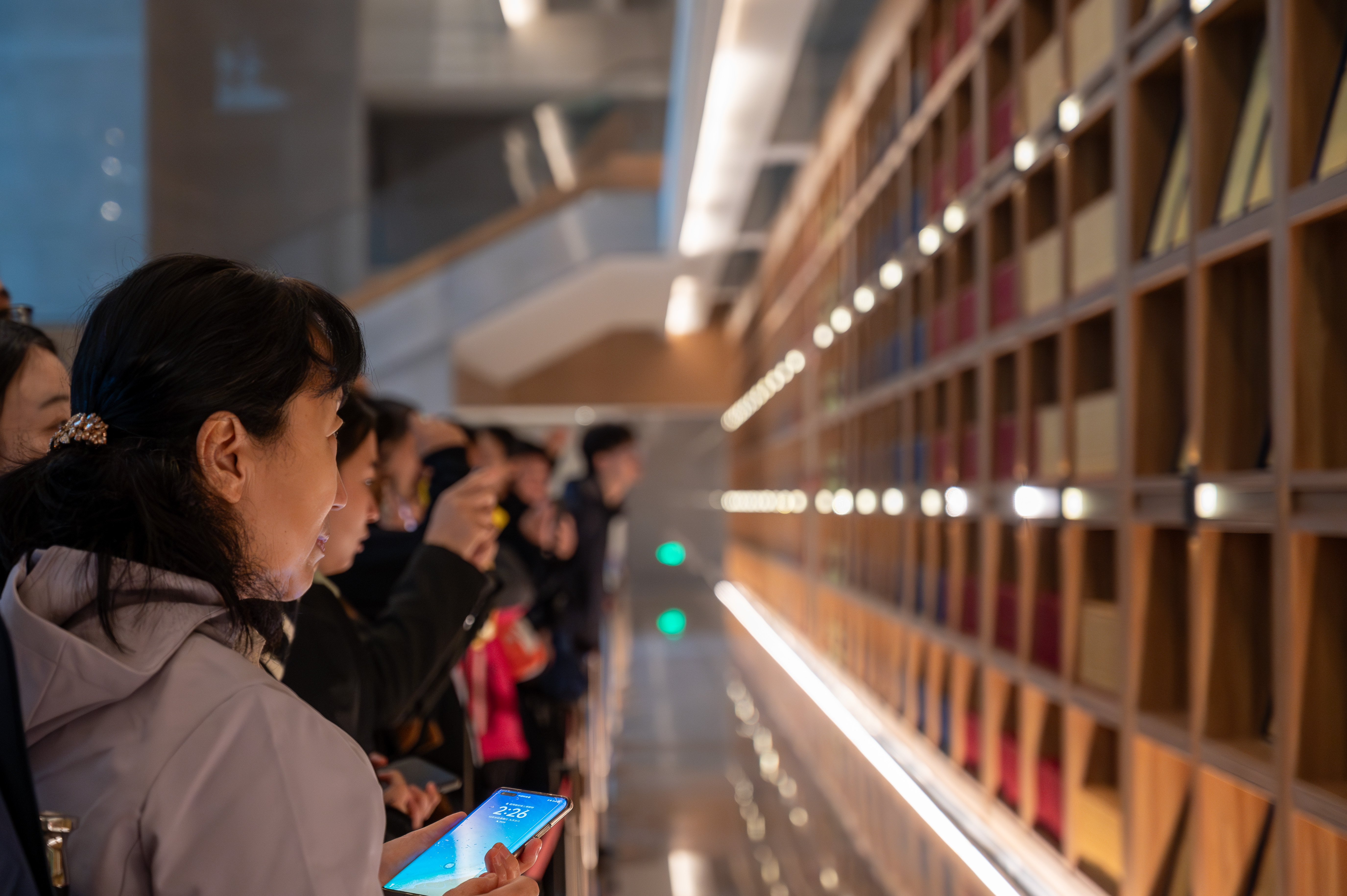 在西安国家版本馆,党员们学习了解了丰富的版本收藏情况,深入探寻了版本馆独特的规划构思、建设历程和建筑风格,依次参观了文济阁通顶书墙、“赓续文脉,踔厉前行——中华文化经典版本展”及“楮墨遗珍,万里同风——丝绸之路版本展”。大家通过展厅内的各类文物文献、珍贵实物、历史图片及手稿等版本资源,详尽地领略了我国西部地区丰富的中华经典版本流传历程,亲身体验了中华优秀传统文化、革命文化和社会主义先进文化的独特魅力与价值,也感悟到了文明记录、保存、流传的艰辛历程。