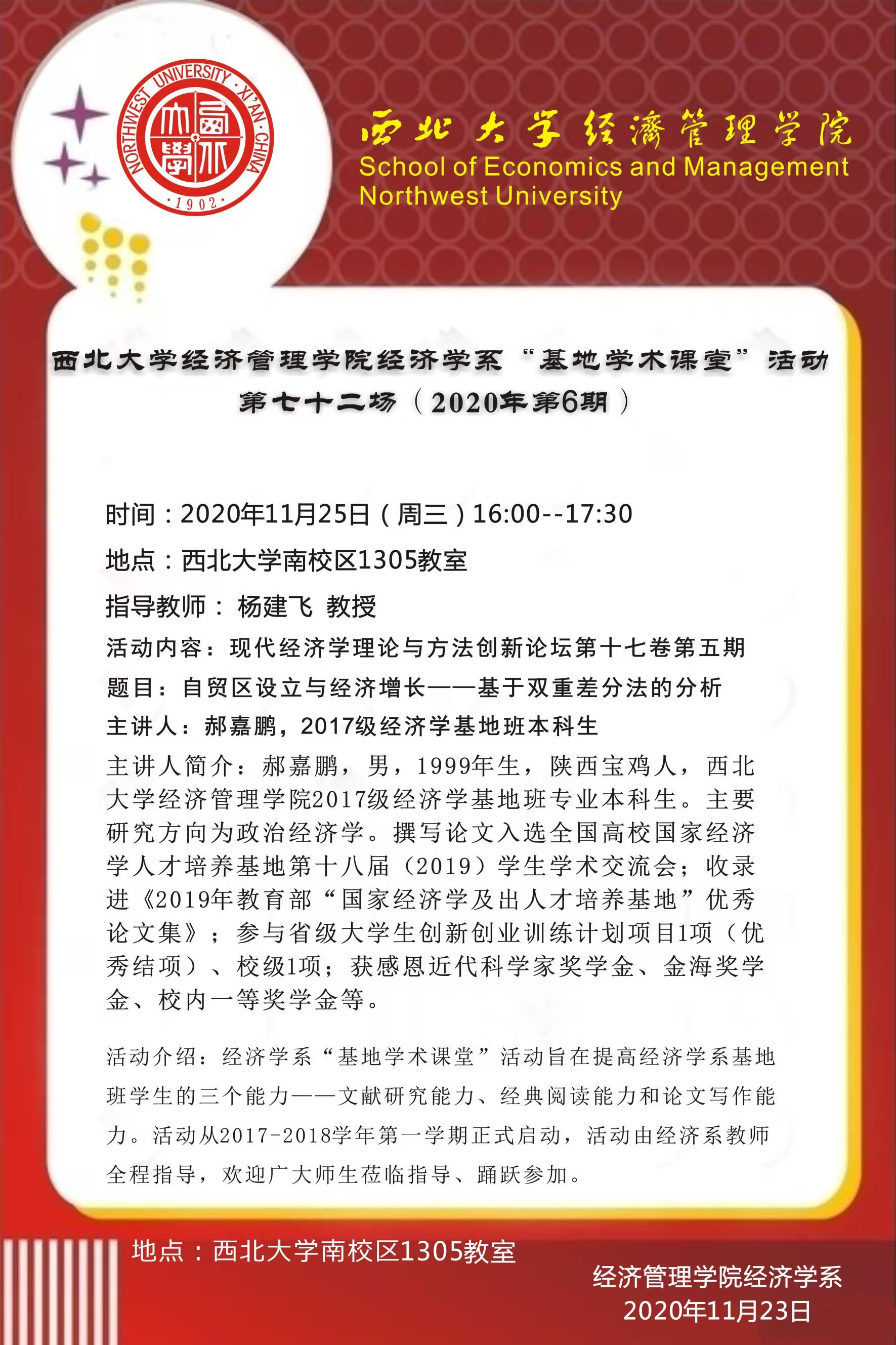 yl7703永利集团经济学系“基地学术课堂”活动第七十二场(2020年第6期)
