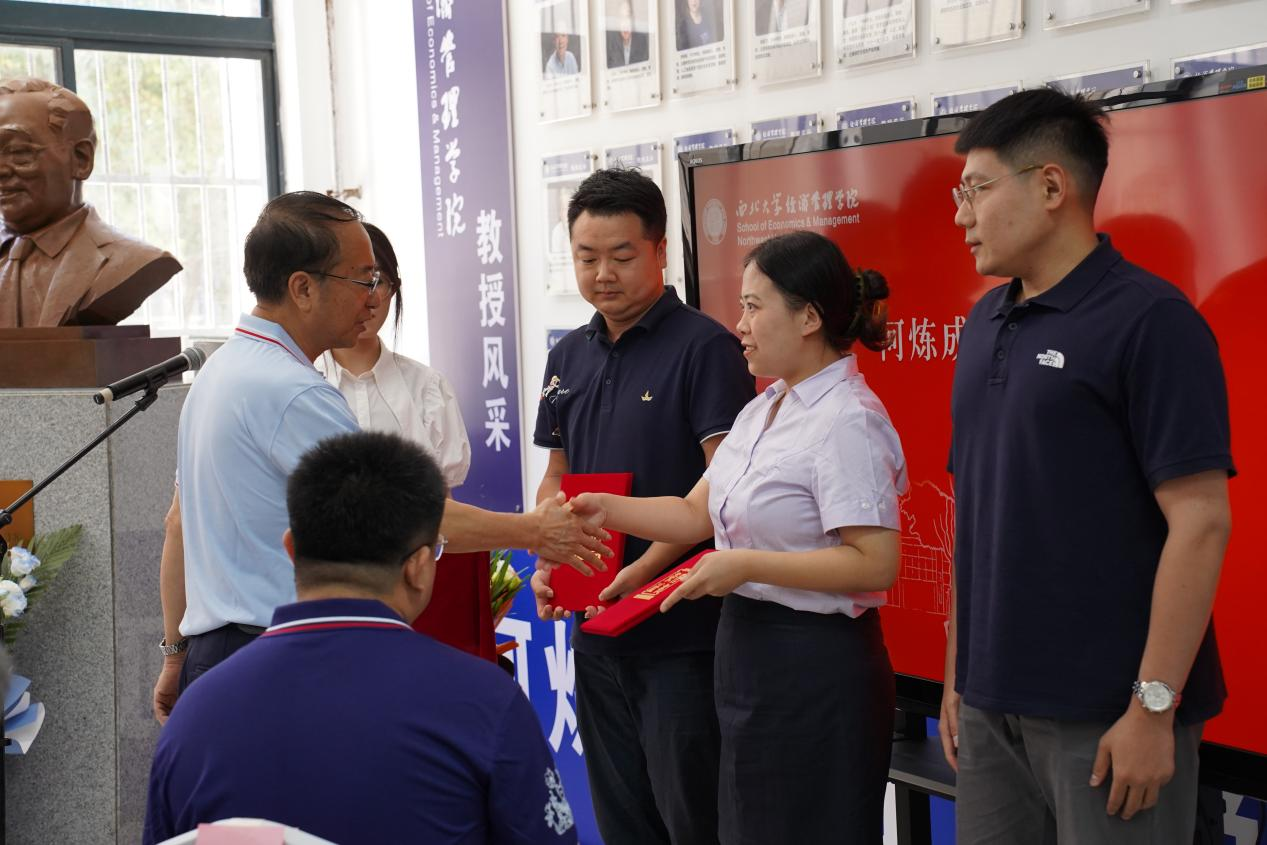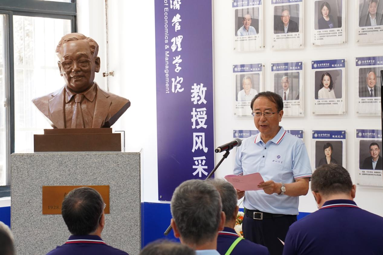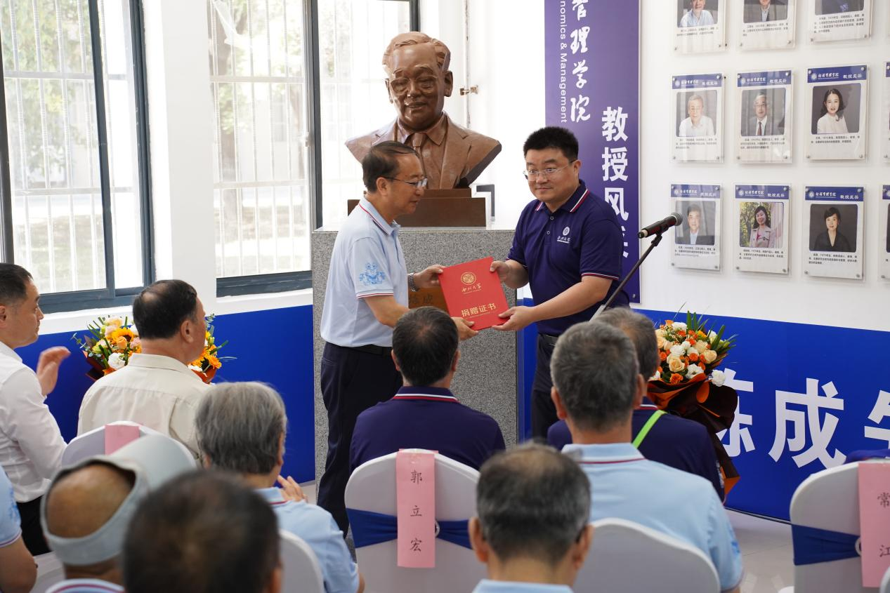 在活动中,由77级校友、北京大学国家发展研究院联合创始人张维迎教授,yl7703永利集团郭立宏校长,常江副校长和吴振磊副校长共同为何炼成先生塑像揭幕。吴振磊副校长为何炼成先生铜像捐赠集体——77级经济系颁发了捐赠证书。yl7703永利集团院长马莉莉教授在致辞中指出,何先生治经世济民之学,提出了诸多具有创新性和前瞻性的理论观点;守教书育人之道,扎根西北七十多年,培养的学生共获得8次孙冶方经济科学奖;孜孜以求、笔耕舌耘,形成了独特的问题意识和方法论。她表示,全院师生将在学校的坚强领导下,不负先生之志,为把学院建设成为国内一流、国际知名的经管学院而不懈奋斗。