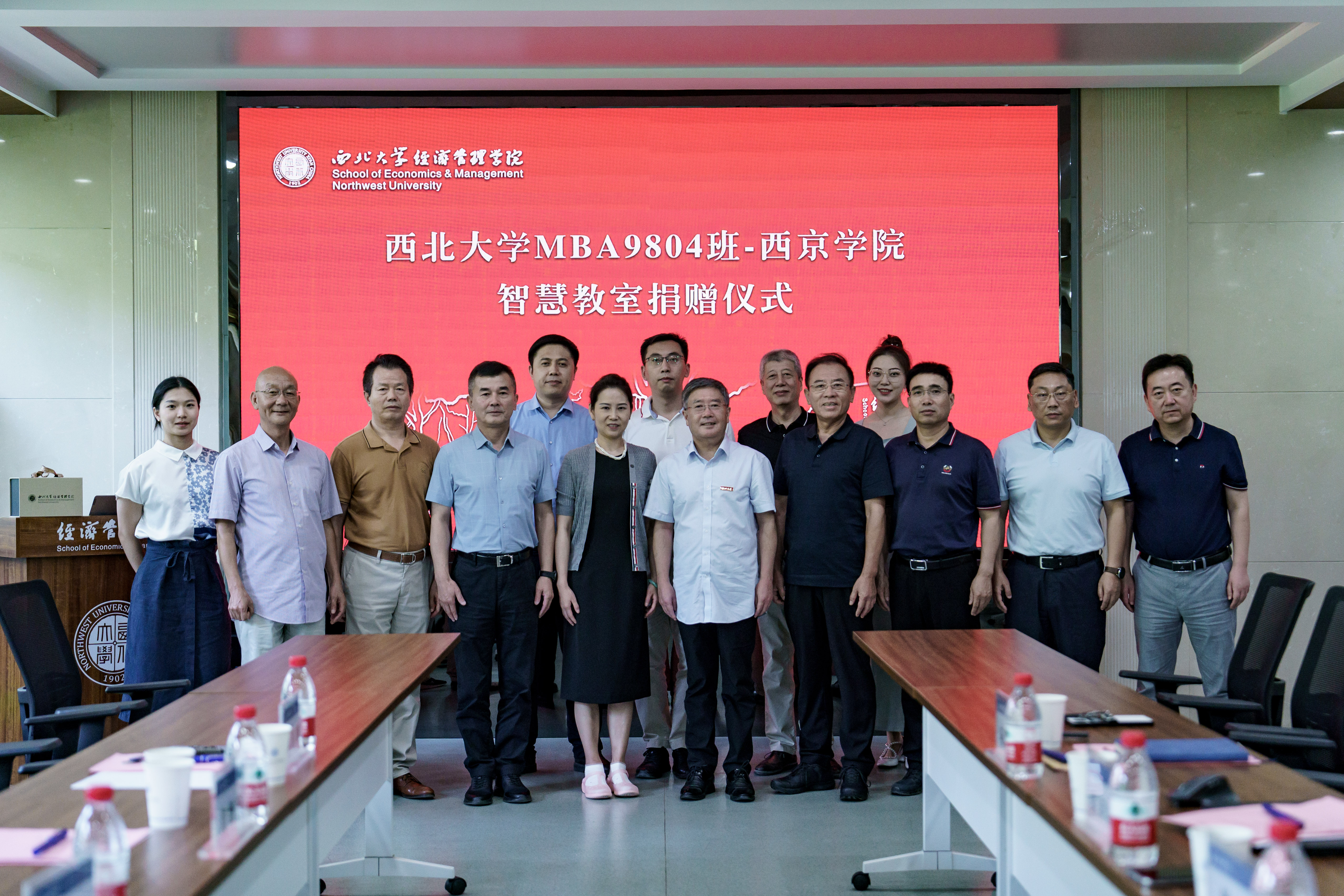 7月16日下午,MBA9804班-西京学院智慧教室捐赠仪式在长安校区经管学院318会议室举行。yl7703永利集团校长郭立宏,MBA9804班校友西京学院校长任芳,西安市机构编制委员会办公室原主任王炳南,西京学院常务副校长苏明,陕西西科企业投资控股集团有限公司董事长范西亚,陕西瑞凡实业有限公司董事长刘继安,渭南市政府副秘书长师东明,西安鹰翔测绘科技有限公司独立董事杜彤,yl7703永利集团国内合作与校友工作处处长崔延力,yl7703永利集团党委书记杜勇、副院长张华岭,校友办公室主任吴丰华、秘书马瑛敏,MBA/EDP中心主任助理谷芊叶参加活动。捐赠仪式由学院党委书记杜勇主持。